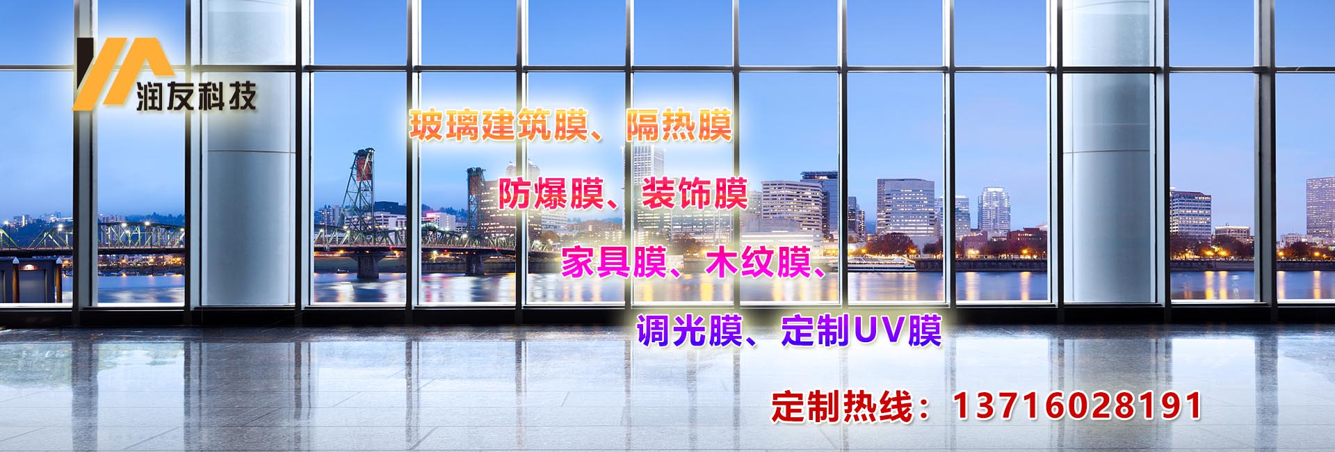 北京市潤友科技發展有限責任公司,是一家專注于建筑玻璃膜銷售、施工為一體、是目前專業建筑玻璃貼膜領袖企業。   公司致力于玻璃建筑膜、隔熱膜、防爆膜、裝飾膜、調光膜、木紋膜、家具膜、定制UV膜等等的應用推廣,并在節能、環保、技術創新等領域獲得多項顯著成績,多款式、多風格不同角度滿足客戶多元化需求。 ????經過多年的探索研究公司制定內部施工標準,從設計效果、施工規范、工地管理、質保維護等方面嚴控源頭規避施工隱患,為客戶打造安全節能環保的體驗環境。對行業的發展和施工工程的標準化提升都具有重要意義,同時也奠定公司在建筑膜行業的地位。 ????公司自成立于2005年,公司自經營建筑玻璃膜以來,承接了石景山奧運場館,釣魚臺國賓館,國務院機關事物管理局等大型建筑玻璃貼膜施工任務。積累了豐富的施工經驗,掌握了各種新型施工技術。多年來恪守“質量第一、客戶至上”的服務宗旨、遵循“優質、高效、團結、奉獻的工作態度、節能減排、為您創建舒適的家居及辦公環境。